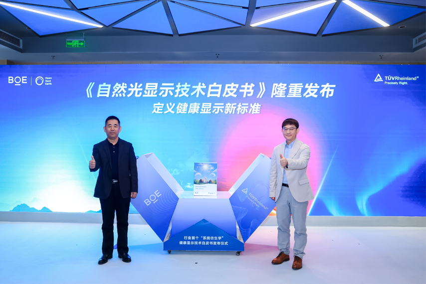 会上,BOE(京东方)携手检测认证机构TÜV莱茵共同发布《自然光显示技术白皮书》(下称《白皮书》),不仅为健康显示领域提供了系统性、可量化的指引,更将为全球显示产业树立健康护眼的可测量基准,推动显示产业从“看得清”迈向“看得舒服、看得健康”的新纪元。