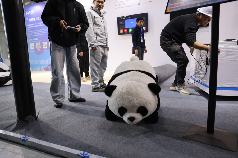 扮演可爱大熊猫的四足机器人。袁婧摄。